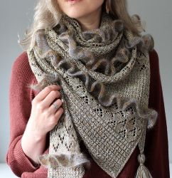 Красивые текстуры и пышные мохеровые оборки создают эффектное сочетание в этой уютной треугольной шали.